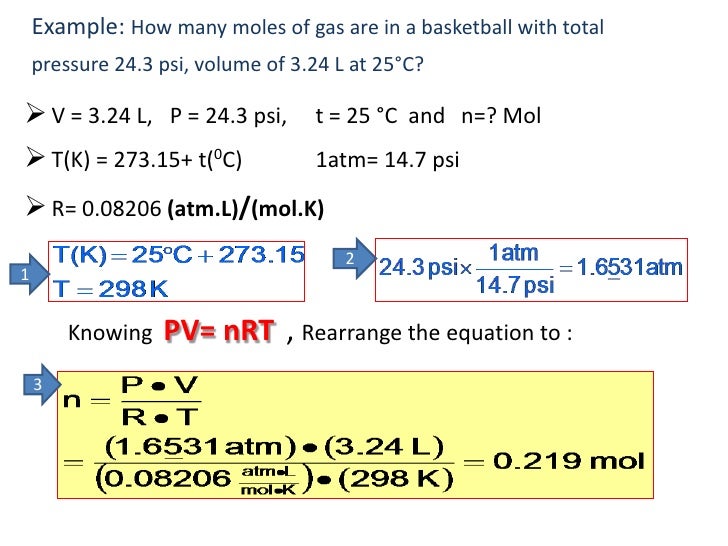 This information is in the form of tables of values as well as the equations for calculating the factor values. The kinetic theory of gases. The ideal gas law states that p x v = n x r x t where, p is pressure, v is volume, n is number of moles of the gas, r is the ideal gas constant and t is temperature in kelvin. This ideal gas law calculator will help you establish the properties of an ideal gas subject to pressure, temperature, or volume changes. Apply the ideal gas law to molar volumes, density, and stoichiometry problems. Here's why the idea gas law has limitations. The law of ideal gases states that the volume of a specified amount of gas is inversely proportional to pressure and directly proportional to volume and now if the physical conditions of temperature, pressure and volume show variation then the initial values shall be t1, p1 and v1 while the final. Its value depends on the units used. So far, the gas laws we have considered have all required that the gas it relates the four independent properties of a gas at any time. The ideal gas law is a state function for ideal gases that relates pressure, temperature and molar volume. Ideal gas law calculations pv=nrt tutorial with worked examples for chemistry students. For example, the ideal gas law makes an assumption that gas particles have no volume and are not attracted to each other. Ideal gas law formula derivation in physics or chemistry, universal constant r, ideal gas molecules, mixed pressure of perfect gases, equation of state.